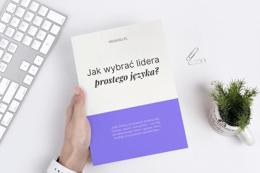 Zanim zaczniesz serię szkoleń, wdrożysz zasady prostego języka, uporządkujesz szablony i dokumenty, potrzebujesz kogoś z Waszej organizacji, kto pociągnie tę zmianę. To pierwszy i najważniejszy krok. Lider prostego języka nadaje projektowi twarz, tłumaczy korzyści różnym zespołom w Waszej firmie i usuwa blokady w procesie. Dzięki temu standard nie zostaje na slajdach, tylko trafia do codziennej pracy. Silny lider prostego języka to gwarancja skutecznego wdrożenia. Dlaczego? Bo ludzie szybciej przekonują się do człowieka niż do idei. Dopiero, gdy będziesz znać nazwisko lidera, możesz zacząć planować kolejne kroki, czyli np. rekrutację do zespołu projektowego.